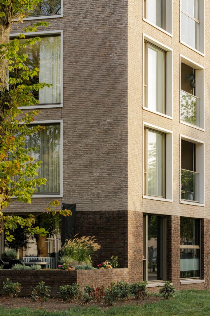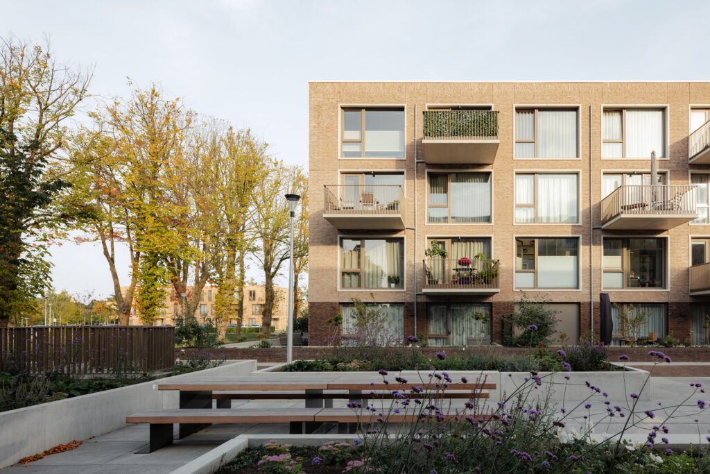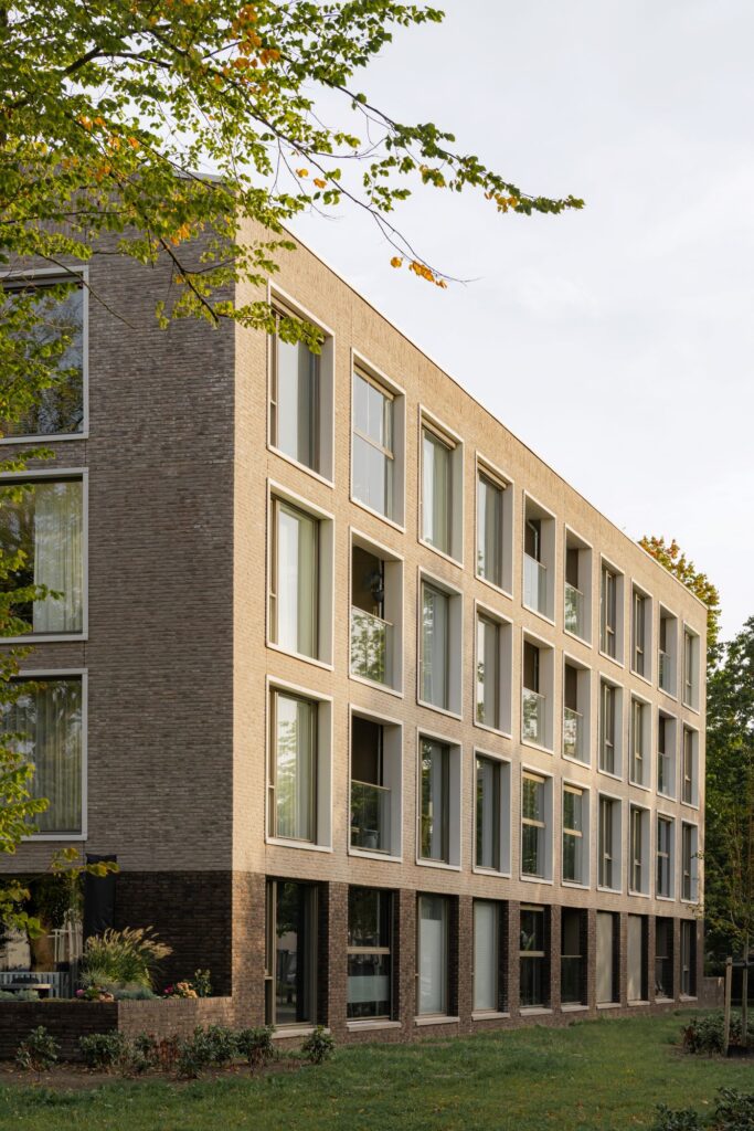 The redevelopment of the former boarding school ‘Het Juvenaat’, located next to the train station in Etten-Leur, has given rise to a new residential campus with a unique character. The existing complex, built in 1951 as a boys’ boarding school, has been transformed into a residential building and, together with four new building blocks, forms an ensemble of a total of 120 homes. This entire project was developed from a single integrated vision with the old Juvenaat at its core. The green character of the public space remains the carrier of the area and is the starting point of the new ensemble. The extensive parking program is hidden from view as much as possible, and the new buildings are subdued, seeking to align with the existing architecture. Together, the greenery, the existing, and the new buildings form a residential neighborhood in the green with a campus-like character.