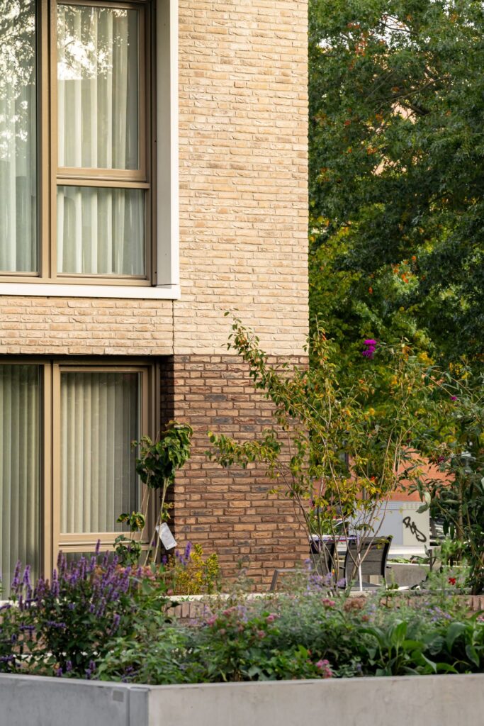 On the former sports field (the Zonnestadkamer), there are two residential buildings designed by Voorwinde Architects and Studio AAAN. These buildings are positioned parallel to a sightline, linking the entrance of the new development to the old chapel, the heart of the Juvenaat grounds.