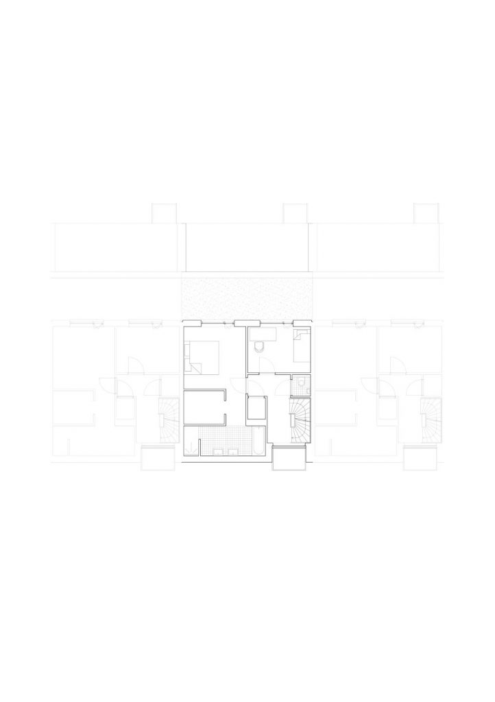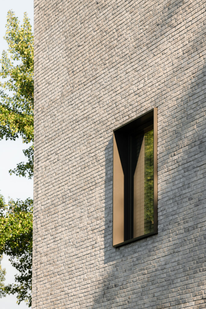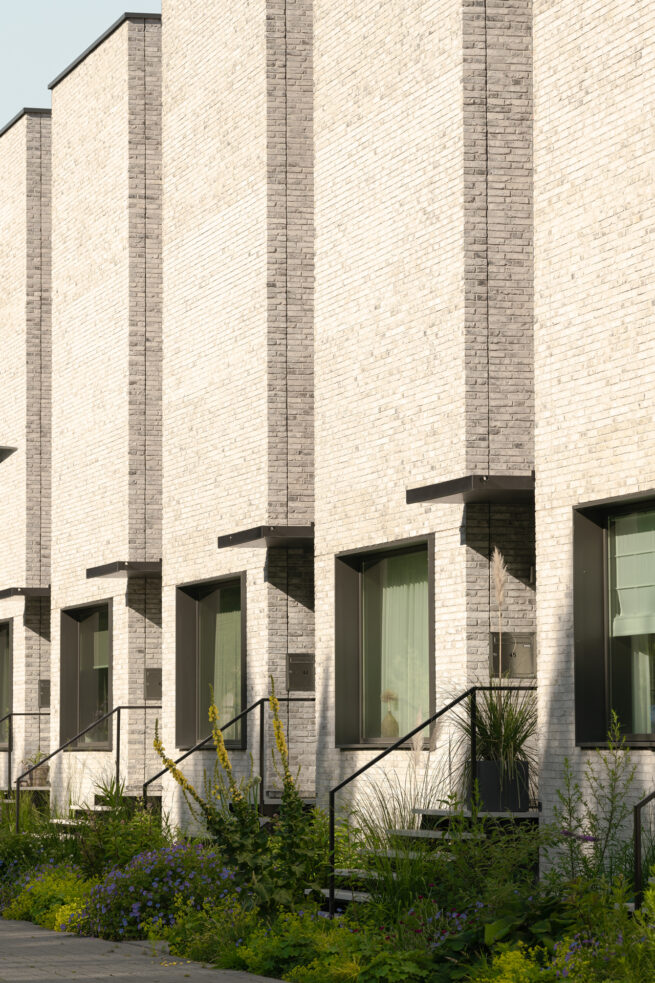 The ensemble derives its identity from a distinctive composition of large masonry surfaces with carefully positioned openings. In the houses on the Kralingse Zoom side, the secondary functions are positioned on the floor next to the noise-affected facade. The only opening in this facade is a large window on the living floor that offers a panoramic view of the water and greenery. The entrances of these houses can be reached via an outside staircase that gives the houses a certain stateliness. For the masonry, a light, hand-moulded brick was chosen from the brick factory Façade Beek in Limburg. The white cementation provides a strong contrast to the dark grey window frames. Wooden facade cladding in recessed surfaces gives the houses a warm accent.