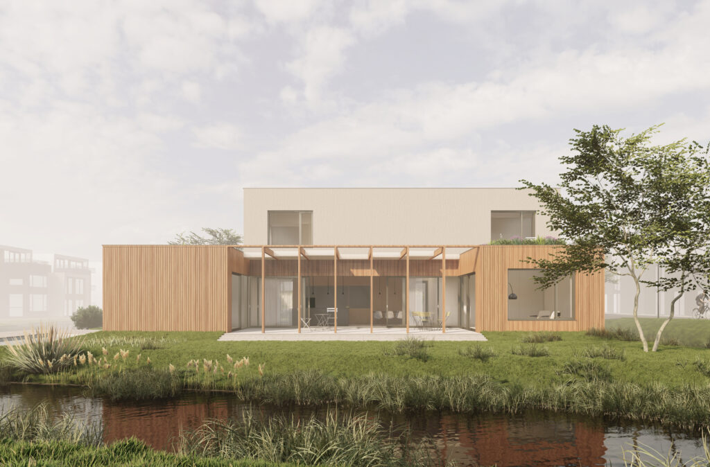 This villa in Waterwijk Nesselande is surrounded by water on three sides and enjoys an unobstructed view over the Zevenhuizerplas. The living areas of the house are openly connected to each other and situated around an ‘outdoor room’, equipped with a pergola construction and shade cloths. The house is positioned in the center of the plot and surrounded by a spacious garden that also accommodates a swimming pool.