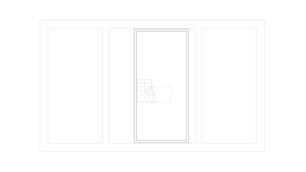De leefruimtes van de woning zijn gepositioneerd aan de Oost- en Zuidzijde. In het volume zijn aan deze zijdes grote gevelopeningen aangebracht om een sterke visuele verbinding met de tuin te creëren. Een vide verbindt de woonkamer met de overloop op de slaapverdieping. De entree en serviceruimten zijn gepositioneerd aan de West- en Noordzijde van de woning. Openingen aan deze zijde van het volume zijn geminimaliseerd waardoor vanaf de straatzijde de sobere hoofdvorm sterk waarneembaar blijft.